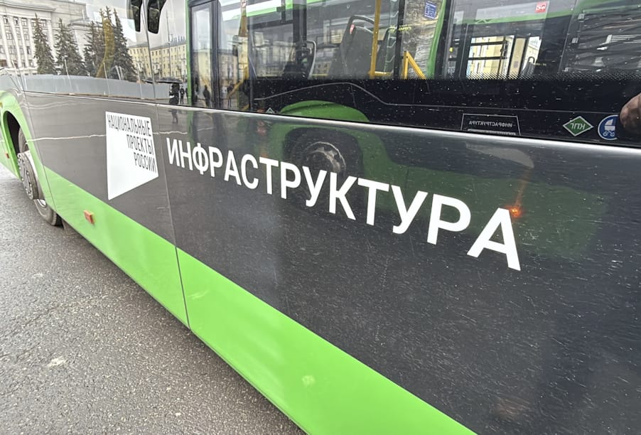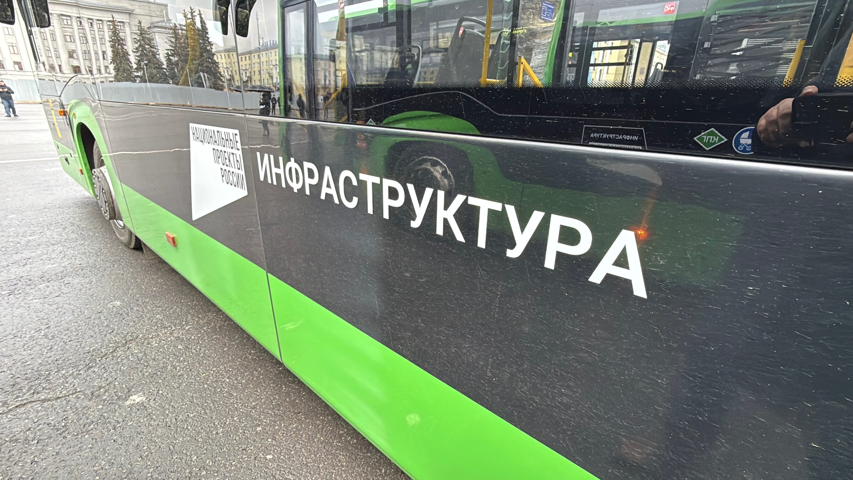 Каждый автобус брендирован логотипом национального проекта «Инфраструктура для жизни», подчеркивая федеральную поддержку и прозрачность реализации программ.