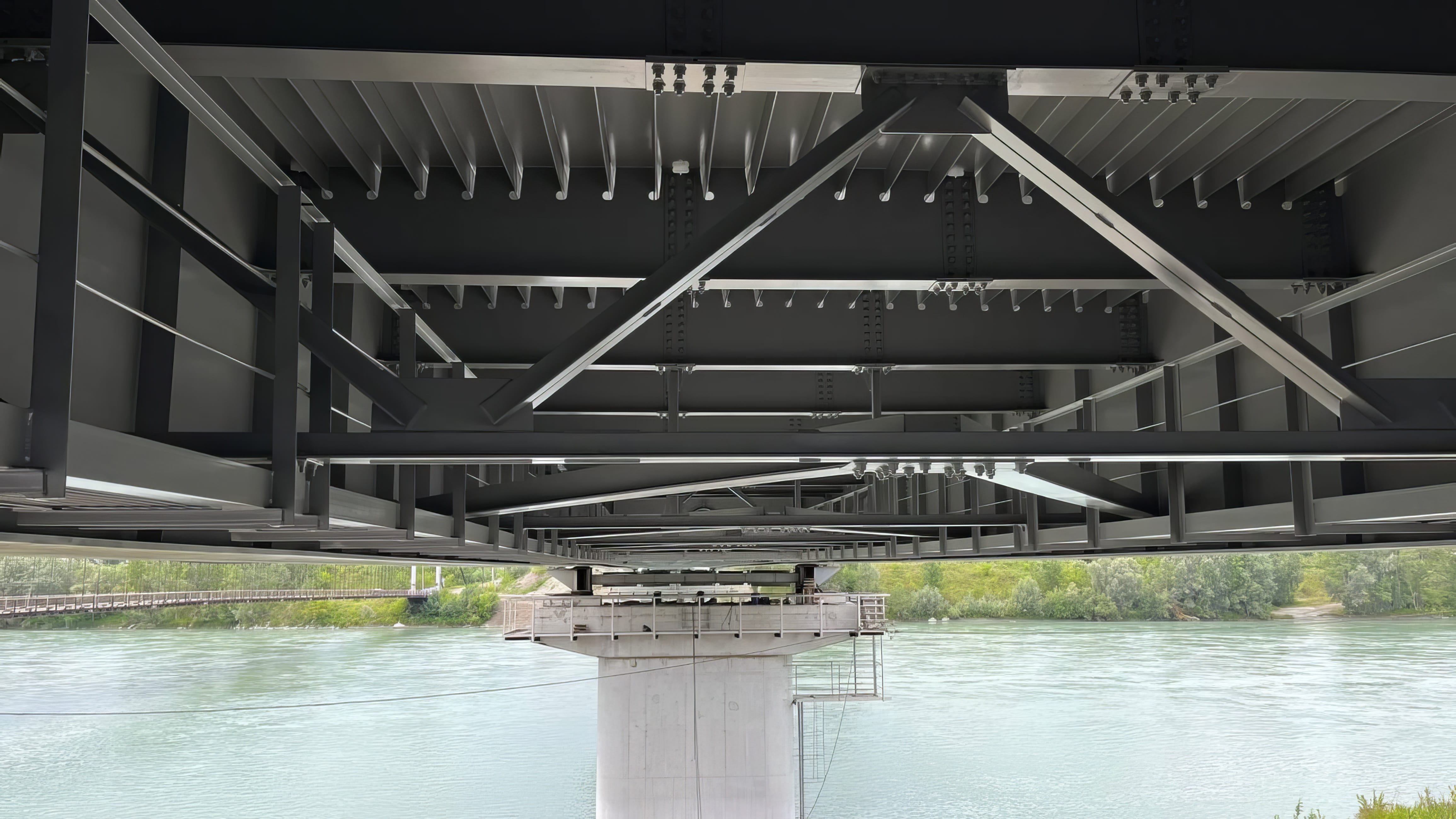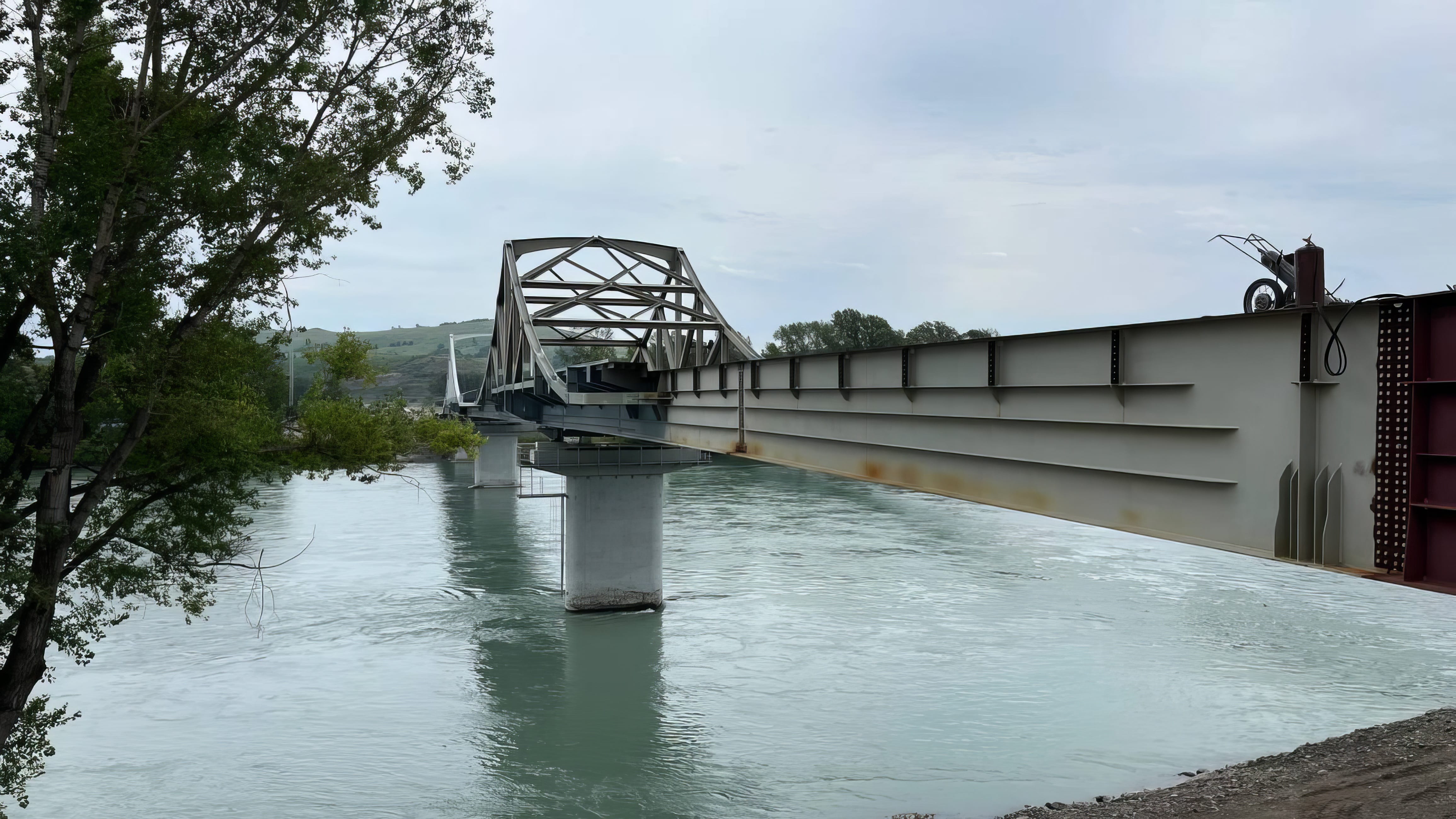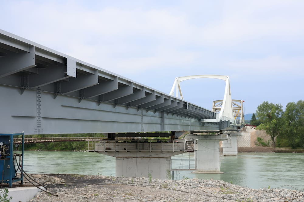 В 2025 году проведена надвижка пролетного строения, а ранее были возведены опоры. На мосту и подходах устроен нижний слой асфальтобетонного покрытия, проведены коммуникации, водоотводы, освещение. В текущем году будут обустроены пешеходные, барьерные ограждения и элементы, обеспечивающие транспортную безопасность.