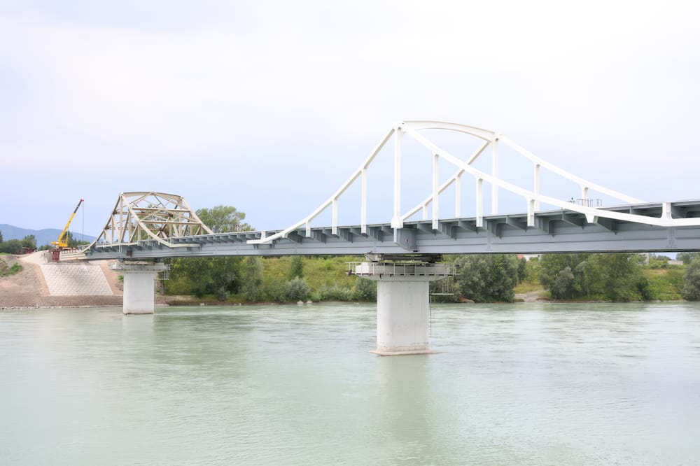 В Майминском районе Республики Алтай продолжается строительство моста через реку Катунь у села Платово. Протяженность объекта составляет 280 пог. м, строительная готовность — 76,7 %.