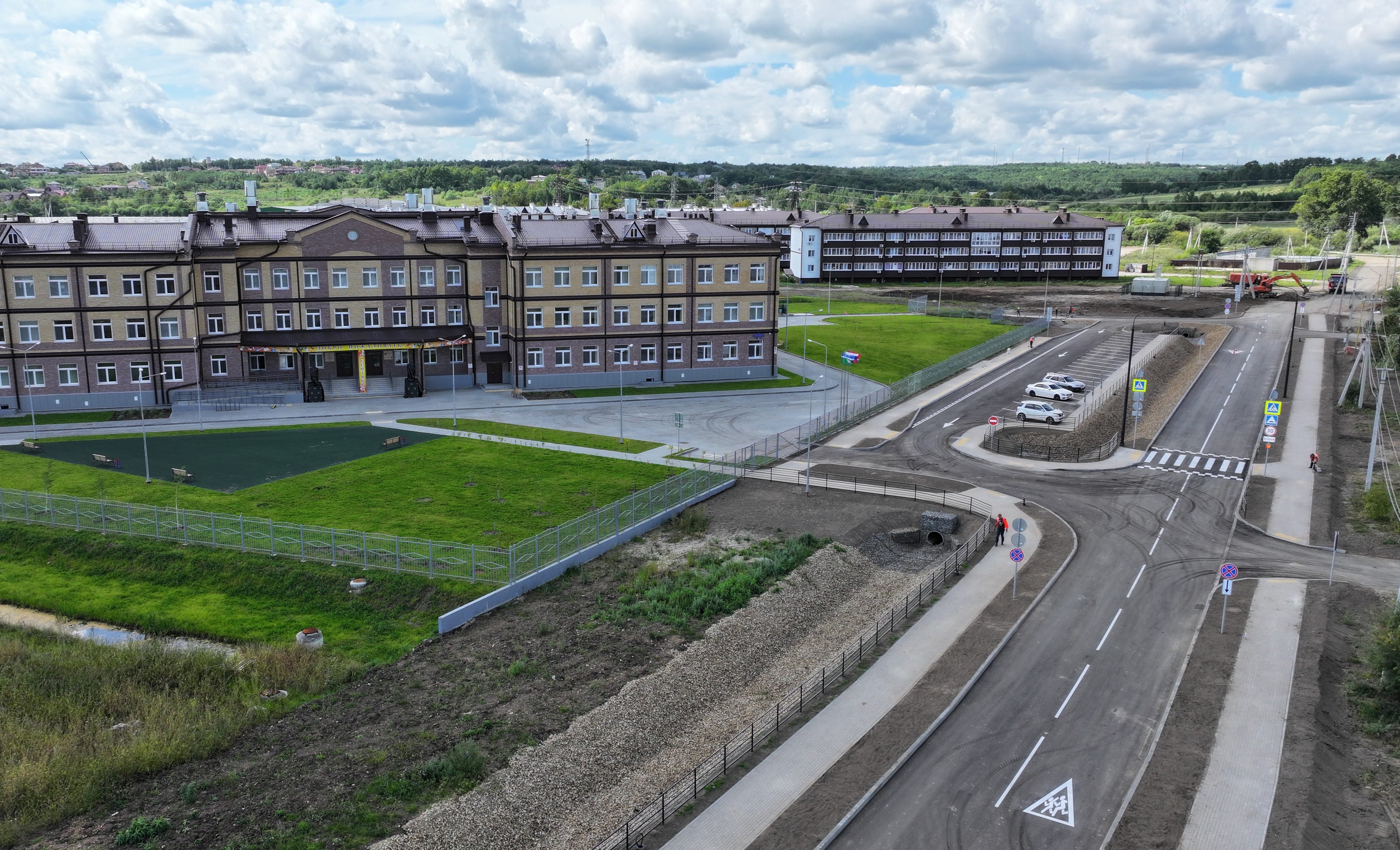 «Чтобы успеть к началу учебного года, организовали работу в две смены. Дорожники подготовили основание, устроили двухслойное асфальтобетонное покрытие, два пешеходных перехода, четыре автобусные остановки, современное уличное освещение и перильное ограждение. Также рядом со школой организована парковочная зона на 24 машино-места, а скорость движения автомобилей ограничили до 40 км/ч», — рассказал начальник участка подрядной организации Владимир Нигей.