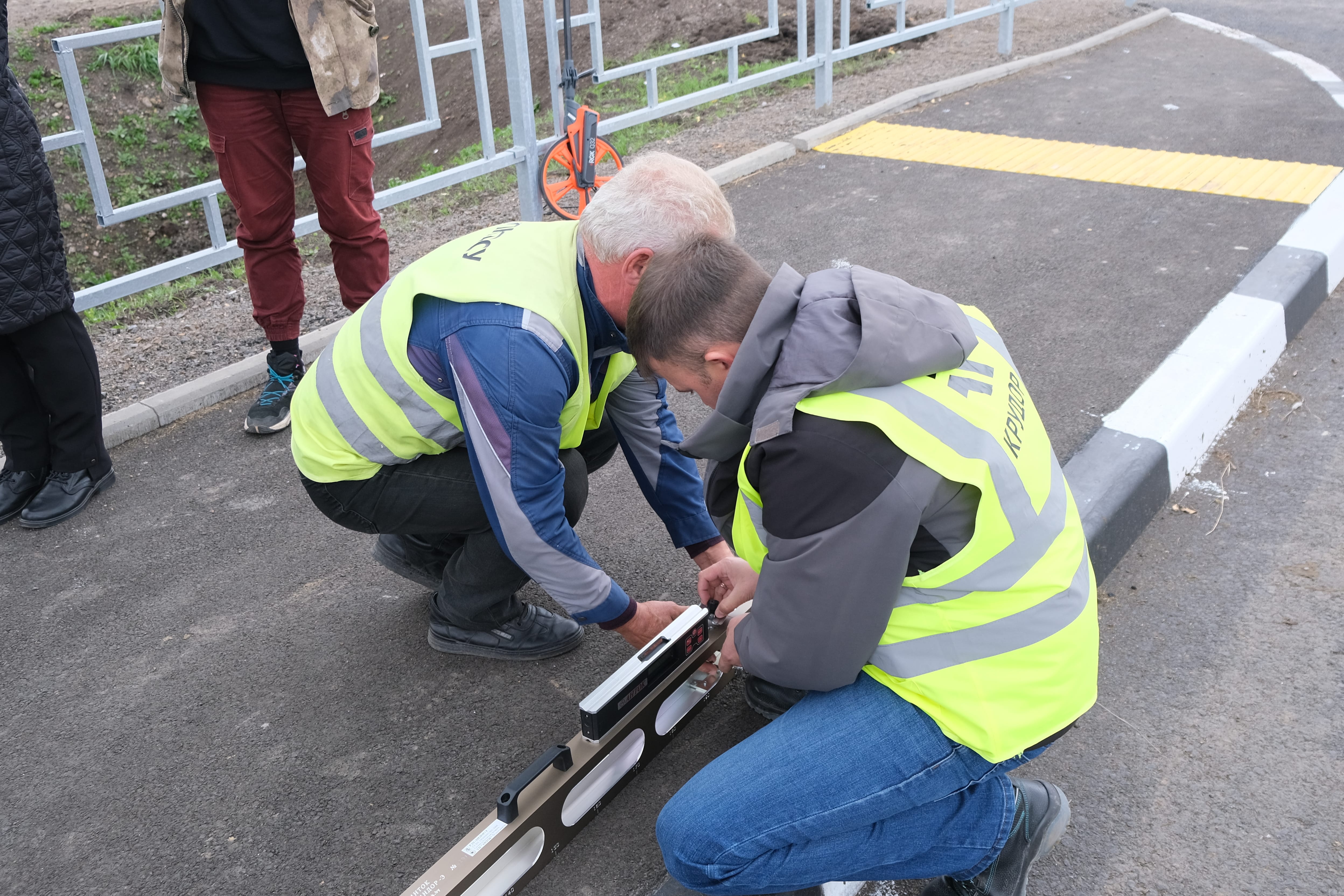 «Ранее мы были здесь в июле, контролировали ход работ, сейчас принимаем готовый объект. Замечаний у нас нет, всё выполнено отлично. Отдельно отмечу рифленую тактильную плитку для людей с ограниченными возможностями здоровья по зрению, ее установили перед пешеходными переходами и на понижениях съездов. Выполнено это из термопластичного полиуретана и смонтировано с помощью двухкомпонентного клея. Такие плитки выглядят надежно, но следующей весной мы обязательно проверим их состояние», — рассказал куратор проекта «Народный Фронт. Дороги» Евгений Рец.