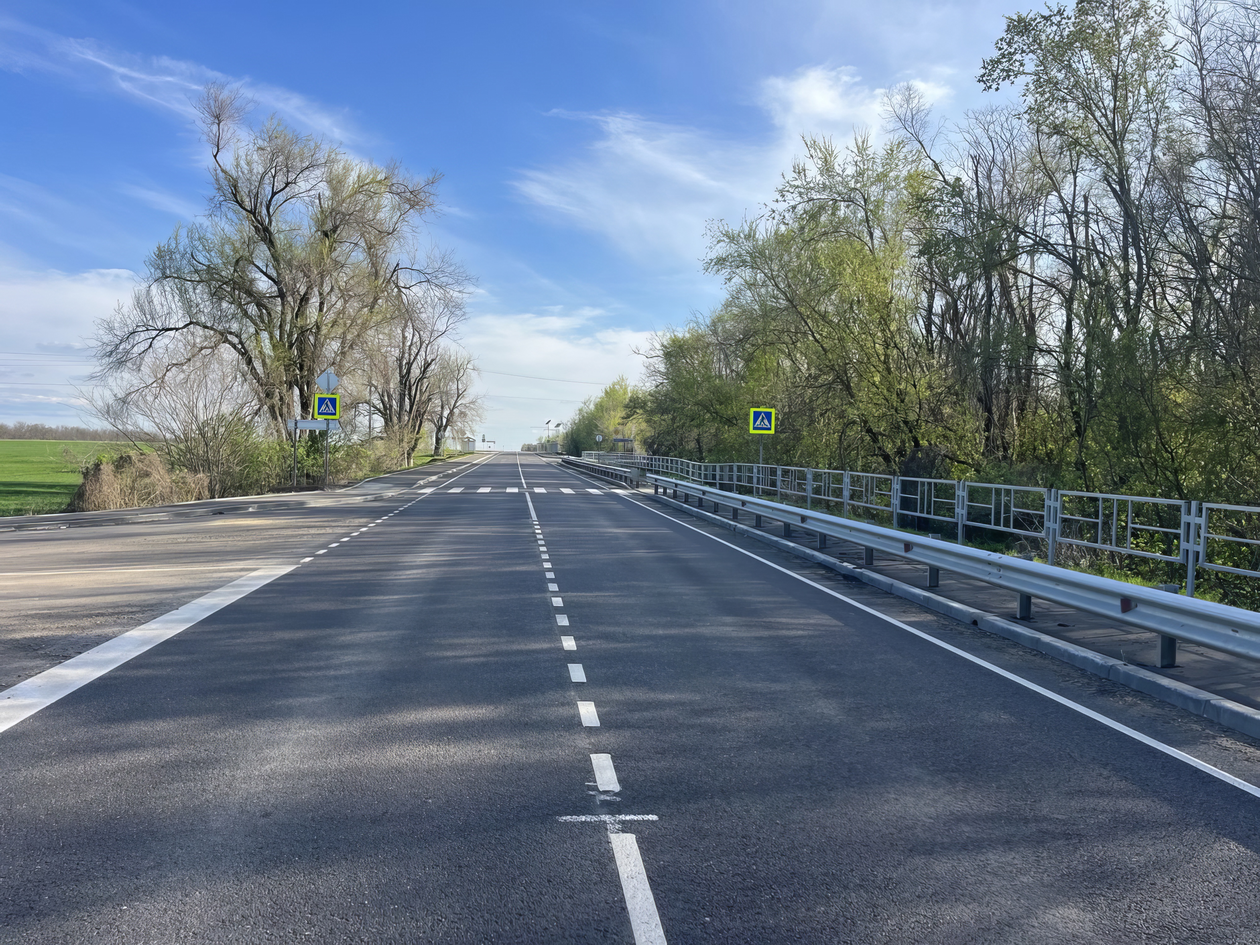 Автомобильная дорога проходит через ряд населенных пунктов. Для обеспечения безопасности всех участников дорожного движения на участке построены новые тротуары, установлены новые дорожные знаки, сигнальные столбики, обновлена горизонтальная разметка.